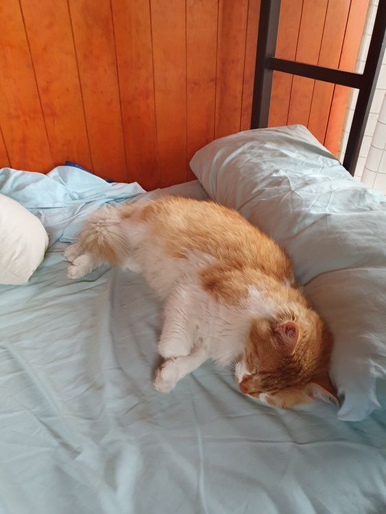 Die Katze ist unsere Freundin im Hostel geworden, die wir zuerst auf Abstand hielten und die schließlich gegen uns gewonnen und es sich im Bett gemütlich gemacht hat. So einfach, so schön.