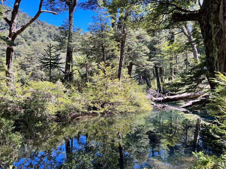 Huerquehue ist der Nationalpark, in dem wir gewandert sind. Unsere Wahl wäre auf die Wanderung zum San Sebastian Gipfel gefallen, leider ist die Route um diese Jahreszeit wegen Schnee noch gesperrt, einzig möglich war der Weg zu den Seen. Los Lagos war ein nettes Ziel, mit gatschigen Wegen, tollem Wald, spektakulären Wasserfällen und spiegelglatten Seeflächen.